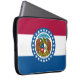 This design features the flag of Missouri, which is a state in the Midwestern United States. Missouri is bordered by eight states (tied for the most with Tennessee): Iowa to the north, Illinois, Kentucky and Tennessee (via the Mississippi River) to the east, Arkansas to the south and Oklahoma, Kansas and Nebraska to the west. In the south are the Ozarks, a forested highland, providing timber, minerals and recreation. The Missouri River, after which the state is named, flows through the center of the state into the Mississippi River, which makes up Missouri's eastern border. The capital of Missouri is Jefferson City, while the largest city in Missouri is Kansas City; other major cities in Missouri are St. Louis, Springfield, Columbia, Independence, Lee's Summit, O'Fallon, St. Joseph, St. Charles and St. Peters.