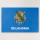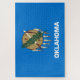 This design features the flag of Oklahoma, is a state in the South Central region of the United States. It is bordered by the state of Texas on the south and west, Kansas on the north, Missouri on the northeast, Arkansas on the east, New Mexico on the west and Colorado on the northwest. Its capital and largest city is Oklahoma City. The flag of the State of Oklahoma consists of a traditional Native American (Osage Nation) buffalo-skin shield with seven eagle feathers on a Choctaw sky-blue background.