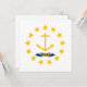 This design features the state flag of Rhode Island, which is a state in the New England region of the United States. The state takes its short name from Rhode Island (known also as Aquidneck Island); however, most of the state is located on the mainland. The state has land borders with Connecticut to the west, Massachusetts to the north and east, and the Atlantic Ocean to the south via Rhode Island Sound and Block Island Sound; it also shares a small maritime border with New York. Providence is the state capital and most populous city in Rhode Island. The official nickname of Rhode Island is the "Ocean State"; it is also sometimes known as "Little Rhody". The official motto of Rhode Island is "Hope". The flag of the state of Rhode Island consists of a gold anchor surrounded by thirteen gold stars (representing the original 13 colonies); a blue ribbon below the anchor bears the state's motto in gold.