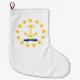 This design features the state flag of Rhode Island, which is a state in the New England region of the United States. The state takes its short name from Rhode Island (known also as Aquidneck Island); however, most of the state is located on the mainland. The state has land borders with Connecticut to the west, Massachusetts to the north and east, and the Atlantic Ocean to the south via Rhode Island Sound and Block Island Sound; it also shares a small maritime border with New York. Providence is the state capital and most populous city in Rhode Island. The official nickname of Rhode Island is the "Ocean State"; it is also sometimes known as "Little Rhody". The official motto of Rhode Island is "Hope". The flag of the state of Rhode Island consists of a gold anchor surrounded by thirteen gold stars (representing the original 13 colonies); a blue ribbon below the anchor bears the state's motto in gold.