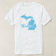 Show your home state pride with these t-shirts and other items that have a blue outline of the state of Michigan