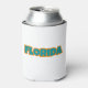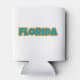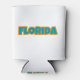 This custom can cooler features a design that displays the word "Florida" in a Luckiest Guy print font with aqua coloured letters orange coloured outline in this custom state pride jersey style theme. Our can coolers fits any standard 12 oz cans and is customised on all sides including the bottom and made with high-density open-cell polyurethane collapsible foam material for easy storage.