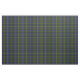 Colourful traditional plaid pattern in shades of green, blue and black with red, yellow, and white highlights.