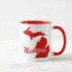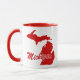 Show your home state pride with these t-shirts and other items that have a red outline of the state of Michigan with the name inside the shape.