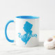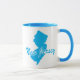 Show your home state pride with these t-shirts and other items that have a blue outline of the state of New Jersey with the name inside the shape.
