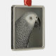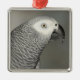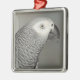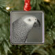 Portrait of a beautiful Congo African Grey parrot on a grey background. She has pretty scalloped grey feathers and a black beak. Scientific name is Psittacus erithacus.