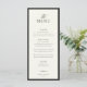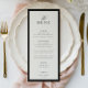 STATELY CALLIGRAPHY, black onyx and soft ecru, wedding menu. Features, elegant black calligraphy and serif typography and black onyx frame detail. Colors can be customized by using the design tool feature.