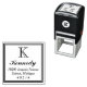 Elegant self-inking return address stamper design features a stately square framed monogram initial / script name design with return address that can be personalised.