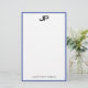 Modern Hand Script Monogrammed Simple Template Personalised Medium Blue White Stationery Paper.