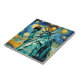This design shows a closeup of the Statue of Liberty and is done in an impressionist style with a wink towards Van Gogh's Starry Night.