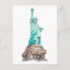 Print of a professional artist watercolor painting of the famous Statue of Liberty in New York, New York, USA on travel postcard.