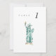Chic wedding table number seating cards featuring a watercolor painting of New York City's Statue of Liberty. The pairing of the painterly watercolor and the chic typography makes for a beautifully fun combo.