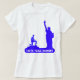 Statue of Liberty and kneeling boy silhouette in royal blue colour with words of truth, peace & harmony T_Shirt. Text can be personalised.