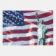 Statue of Liberty in New York with Flag of the United States of America.