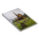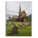 Spiral notebook with an old wooden stave church with a graveyard in front of it with tombstones in Lom, Norway.