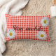 Stay Awhile text on red and white gingham Lumbar Cushion