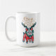 Celebrate the magical and festive holiday season with our custom holiday coffee mug. Fun, illustrative french bulldog design wearing red Christmas sweater, ear muffs and reindeer antlers "Stay Cosy" is written in a script style font in faux gold. The reverse side of the mug features a simple red heart and monogram initial. All artwork contained in this fun, colourful french bulldog coffee mug are hand-drawn original artwork by Moodthology. You can customise the text size, font and layout for your own personal design preference.