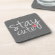 Sweet and fun typography design featuring cursive text in grey and a cute little red heart. Customise this coaster set with the background colour of your choice.