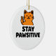 Add a dose of feline encouragement to your home with this adorable Stay Pawsitive Ginger Cat Ornament! Featuring a cheerful orange tabby giving a confident thumbs-up, this ornament is the perfect way to keep your spirits high and your decor "paws-itively" charming.