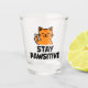 Take a shot of "pawsitivity" with this adorable Stay Pawsitive ginger cat shot glass! Featuring our signature cheerful orange tabby giving a double thumbs-up, this high-quality glassware is designed to bring a smile to any celebration.