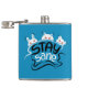 The flask itself is fine. It’s a cheap flask, obviously bought in bulk, however am prepared to overlook that. Given that it is a personalized item, I would have liked to have seen gift boxing instead of the generic packaging. Terrible printing, and/or quality. It’s a cheap, tacky vinyl. It is not cut straight and is also applied in a way that it is overhanging the bottom, causing the glue to catch on items and it will eventually roll and tear, damaging the wrap.