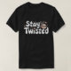 A cute and quirky design featuring a smiling, kawaii-style DNA helix with big, sparkling eyes and a playful expression. The phrase "Stay Twisted" is written in a bubbly, wavy font, matching the fun and lighthearted vibe. Tiny hearts, stars, and sparkles add extra charm. Perfect for science lovers, biologists, or anyone who enjoys geeky humour with a cute twist!