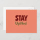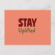 "Stay uplifted"—a simple yet powerful message that captures the spirit of resilience and positivity. This postcard serves as a gentle reminder to keep your spirits high and embrace every moment with a hopeful heart. Perfect for sending encouragement to a friend or keeping for yourself as a daily mantra.