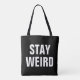 STAY WEIRD black and white typography tote bag for grocery shopping, school books, office etc.