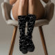Stay Weird Funny Capybara Pattern Socks - This quirky and minimalist capybara pattern is a playful celebration of individuality and charm. Set against a deep black background, the continuous white line art features adorably abstract capybaras in relaxed, whimsical poses. The hand-drawn feel adds an artsy, modern twist that’s both cute and effortlessly cool. Let's be honest...capybara's are so hot right now. Whether you're into offbeat humour or just love a bold, animal-inspired print, this design makes a fun and unexpected style statement. It’s the perfect blend of weird and wonderful—exactly how life should be.