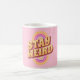 Abstract retro style grunge "Stay weird" text design with pink, beige, orange and purple rainbow decoration