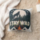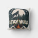 A wolf stands silhouetted howling against a full moon, surrounded by a forest and a campfire between two tents. The words "Stay Wild" are prominently displayed, emphasizing a sense of adventure and nature.