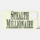 Green text reading "STEALTH MILLIONAIRE" in a font resembling those found on currency. You never know who might actually be a millionaire. Not all of them live large with flashy clothes, the fancy car, or big home. They do not advertise that they are well off. They are stealth millionaires. Advertise the fact and you aren't really be a stealth millionaire, but if no one believes you your secret is safe; perhaps you are hidden in plain sight. For stealth millionaires and those working on it.