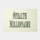 Green text reading "STEALTH MILLIONAIRE" in a font resembling those found on currency. You never know who might actually be a millionaire. Not all of them live large with flashy clothes, the fancy car, or big home. They do not advertise that they are well off. They are stealth millionaires. Advertise the fact and you aren't really be a stealth millionaire, but if no one believes you your secret is safe; perhaps you are hidden in plain sight. For stealth millionaires and those working on it.