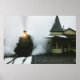 A burst of steam, a belch of smoke, the massive steam engine emerges from the winter shroud on a tour of the countryside
