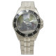 Has heft and feel of expensive stainless steel quartz watches. Good band with safety catch. I removed links, which is easy because engraved arrows show direction to push the linking pins. As always by this seller, the image (a railroad logo) is a perfect reproduction of my emailed image, and is precisely spaced and aligned.