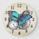 Steam Punk Blue Butterfly Pocket Watch Design Large Clock