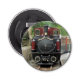 Wales, the land of the little steam trains. A beautifully preserved red train and green carriages full of passengers.