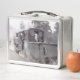 This is a standard metal lunchbox that appears to work just fine. We designed this box ourselves with an uploaded photo and custom text on the front and back. It looks absolutely beautiful except the front of the lunchbox is not centered like it shows in the photo. The print borders don't align with the inset flat part of the box where the preview photo online showed it perfectly centered in there. The back looks nice and centered though.