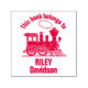 Cute simple steam train and name rubber stamp reads This book belongs to then customise with your own full name. Ideal for a children's library or to stop book mix ups or for books when there are taken to school. © Graphic art and designed by Sarah Trett. www.sarahtrett.com for www.mylittleeden.com