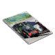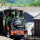 A photographic design of a beautifully restored green steam train.
