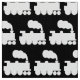 Steam Train Pattern - White on Black Fabric