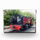 A photographic design of a beautifully restored steam train.