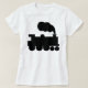 A t-shirt with a simple bold steam train/locomotive symbol similar to the ones which used to be used on road signs for level crossings etc.