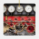 The steam train drivers view from the footplate of the gauges and controls of the train.