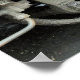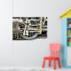 A photographic design of the wheel from a steam train.
