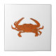 This decorative ceramic tile features a bright orange steamed Atlantic blue crab, also known as hard or Maryland crab. Blue crabs are cooked by steaming and eaten as-is or added to soups, crabcakes, or other dishes. This illustration depicts a male blue crab or "Jimmy crab".