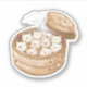 Here's a delightful and cute kawaii graphic depicting 10 adorable cat dumplings cosily nestled inside a bamboo steamer. Each cat dumpling features a blissful smile with cheeky winks. These dumplings are intricately designed to resemble cats, complete with little ears and whiskers peeking out from their fluffy, doughy exteriors. This enchanting depiction of culinary cuteness exudes a sense of joy and comfort, making it an irresistible scene.