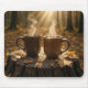 Steaming Coffee Mugs On an Autumn Tree Stump Mouse Pad