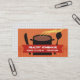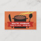 Souper steaming soup, stew, or stock pot business cards for personal or private chefs, cooking classes or culinary instruction, and home cooking caterer or catering biz. Black and orange and reds, with flag for your name and pertinents; put the rest on the back.