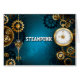 Turquoise, textured, steampunk background with brass and gold gears, a silver key and the clock. Steampunk style.